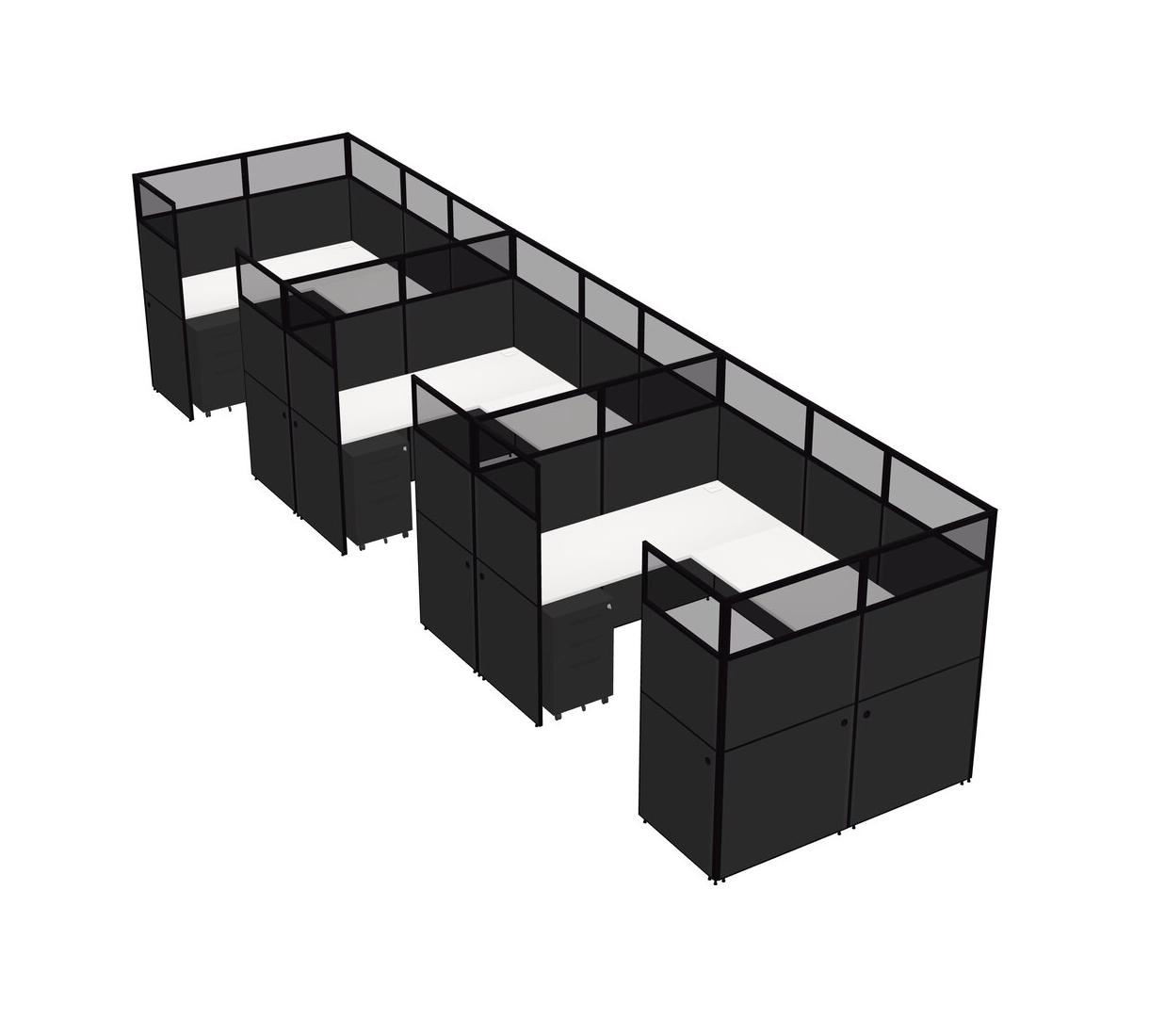 Système De Panneaux En U Blanc Pour 3 Personnes + Tiroirs Mobiles En Métal Pour 3 Utilisateur(s)
