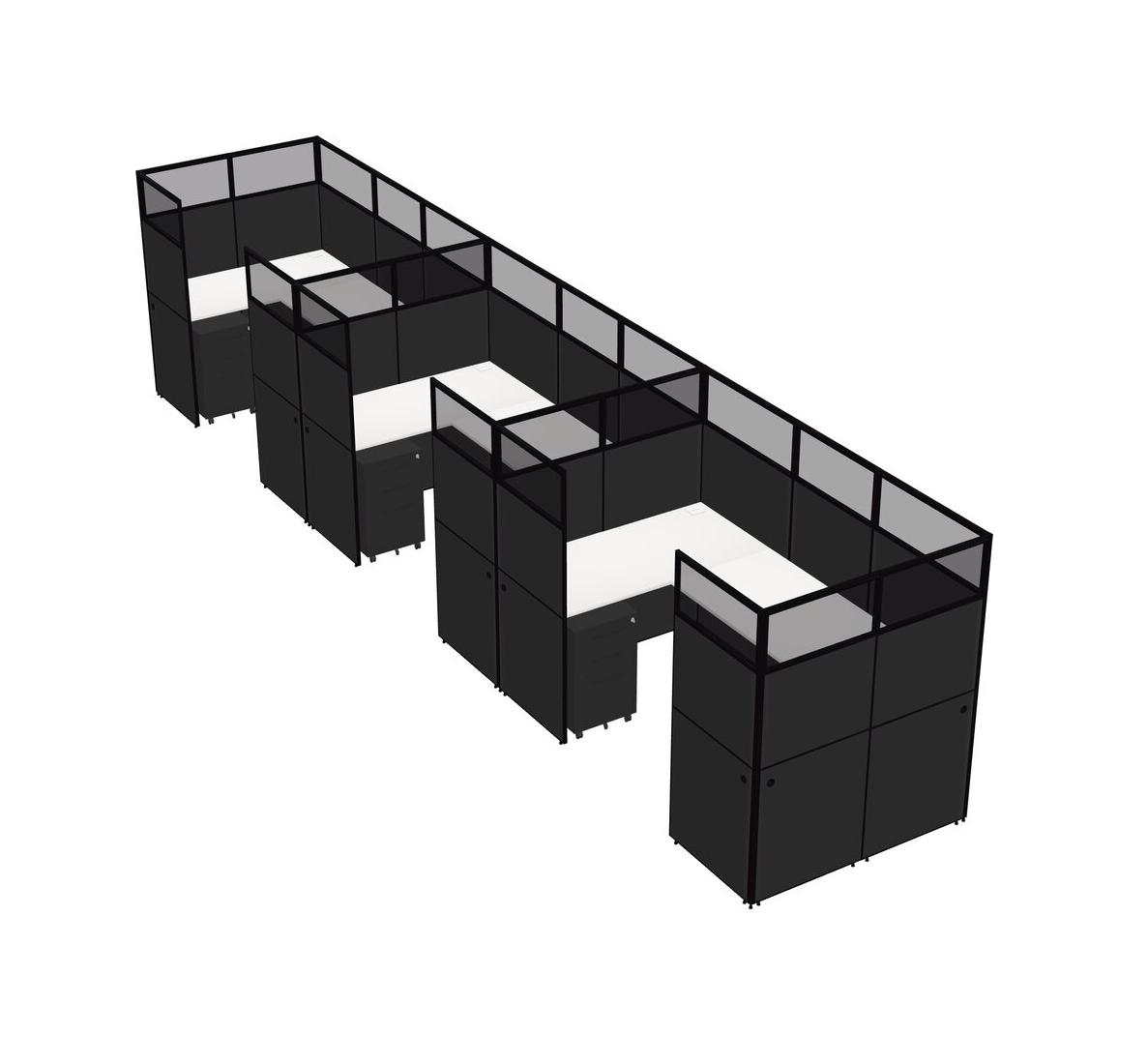Système De Panneaux En U Blanc Pour 3 Personnes + Tiroirs Mobiles En Métal Pour 3 Utilisateur(s)