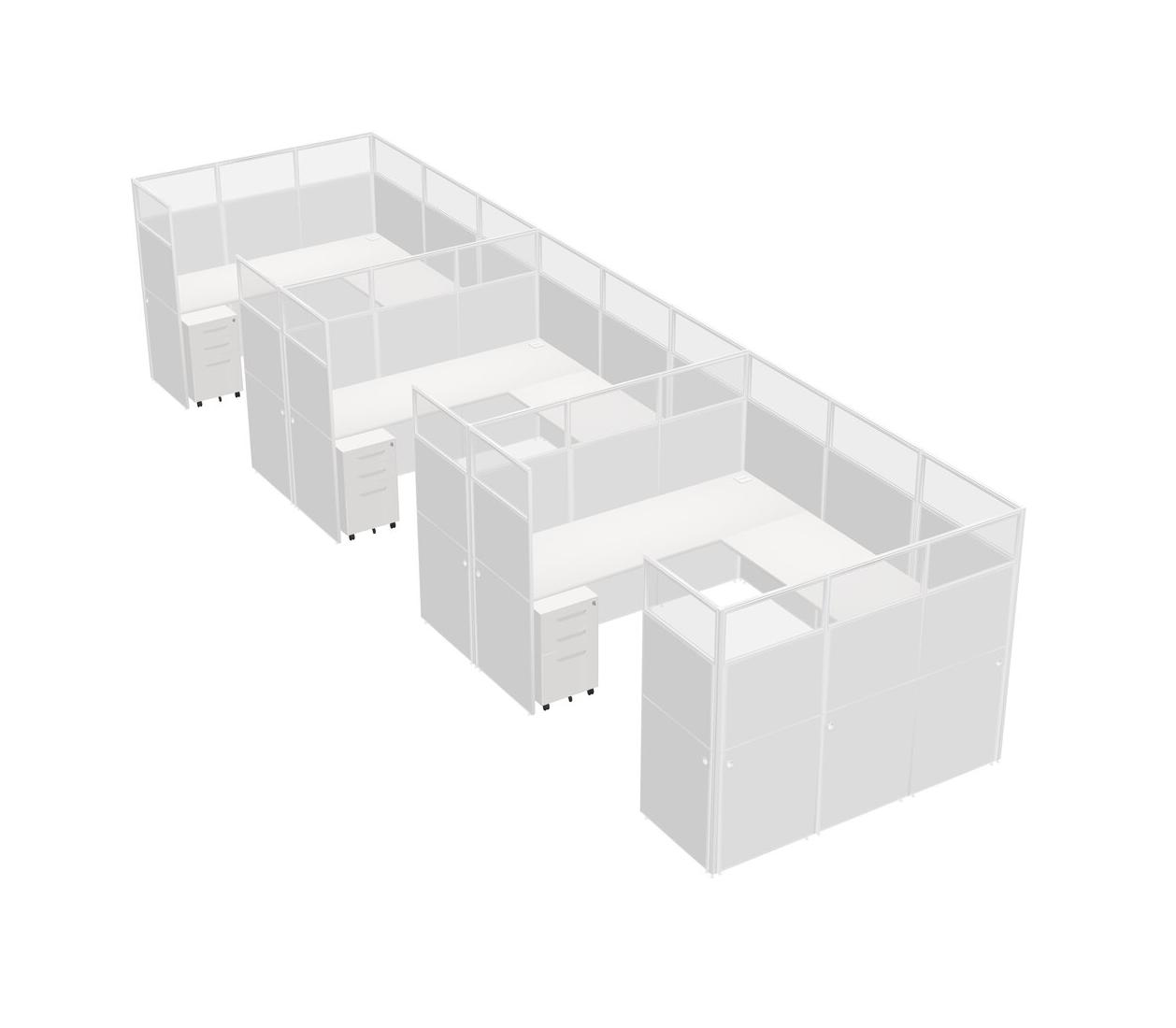 Système De Panneaux En U Blanc Pour 3 Personnes + Tiroirs Mobiles En Métal Pour 3 Utilisateur(s)