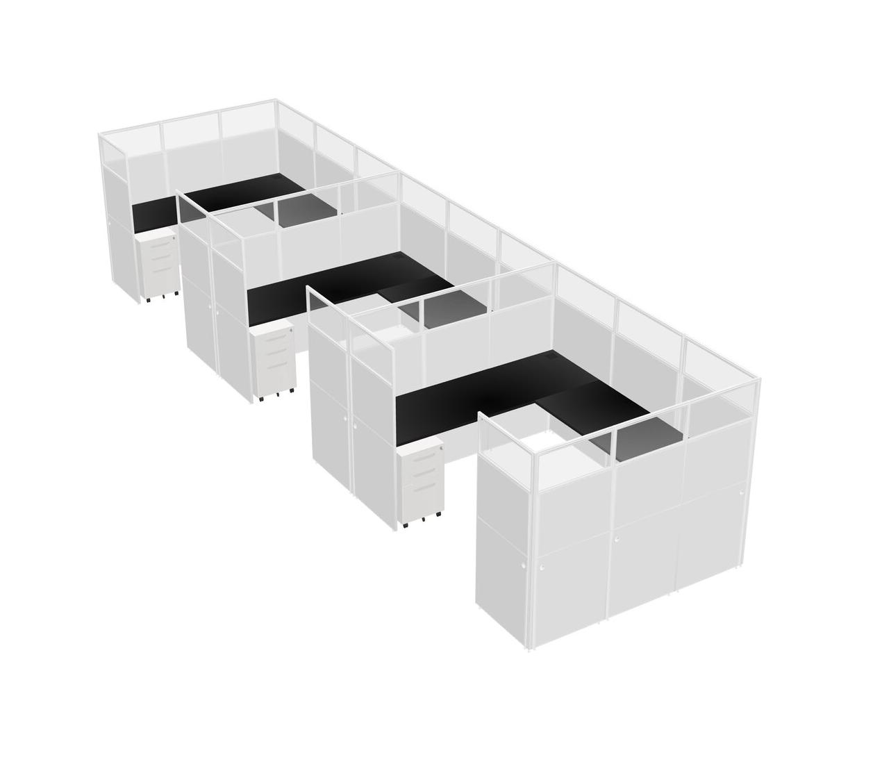 Système De Panneaux En U Noir Pour 3 Personnes + Tiroirs Mobiles En Métal Pour 3 Utilisateur(s)