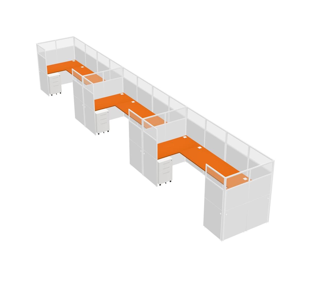 Système De Panneaux En U Orange Pour 3 Personnes + Tiroirs Mobiles En Métal Pour 3 Utilisateur(s)