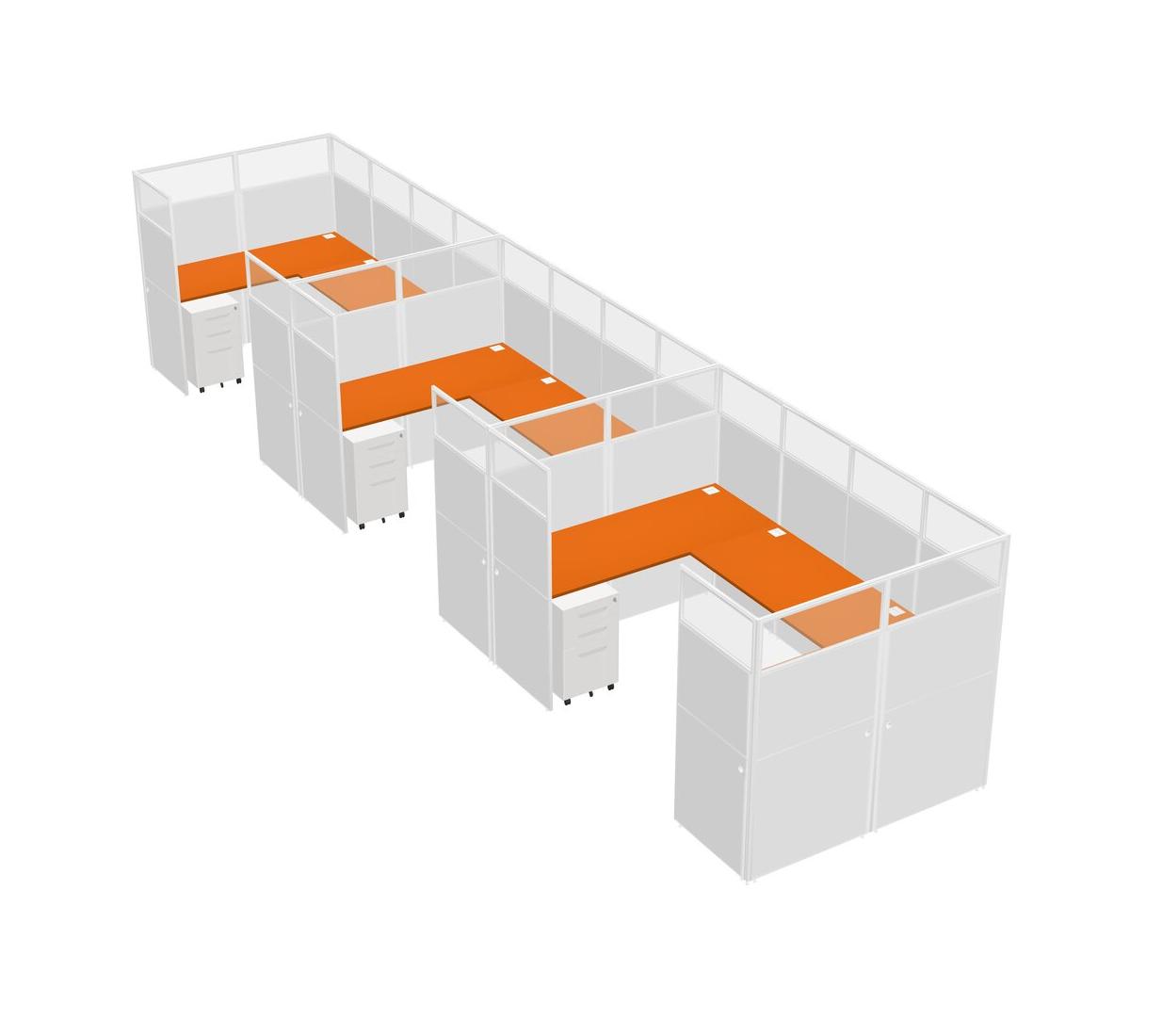 Système De Panneaux En U Orange Pour 3 Personnes + Tiroirs Mobiles En Métal Pour 3 Utilisateur(s)