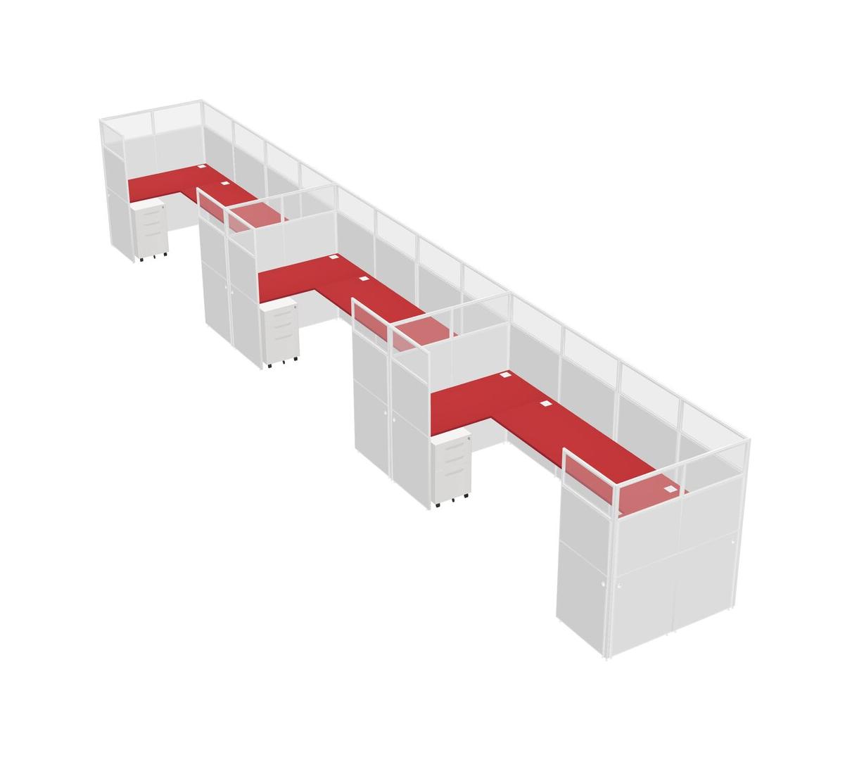 Système De Panneaux En U Prism Red Pour 3 Personnes + Tiroirs Mobiles En Métal Pour 3 Utilisateur(s)