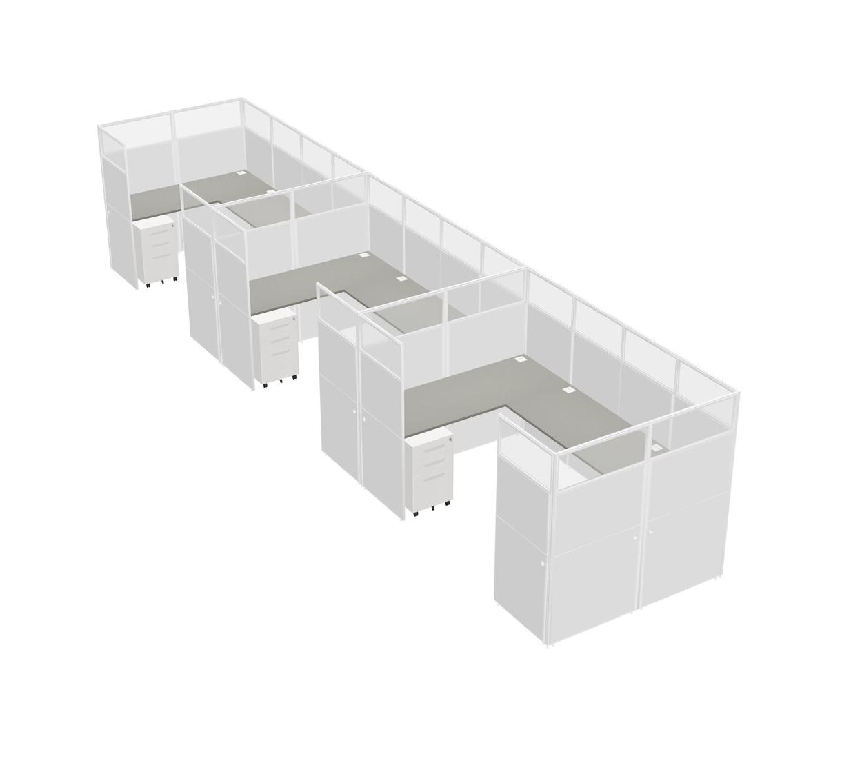 Système De Panneaux En U Grey Shadows Pour 3 Personnes + Tiroirs Mobiles En Métal Pour 3 Utilisateur(s)