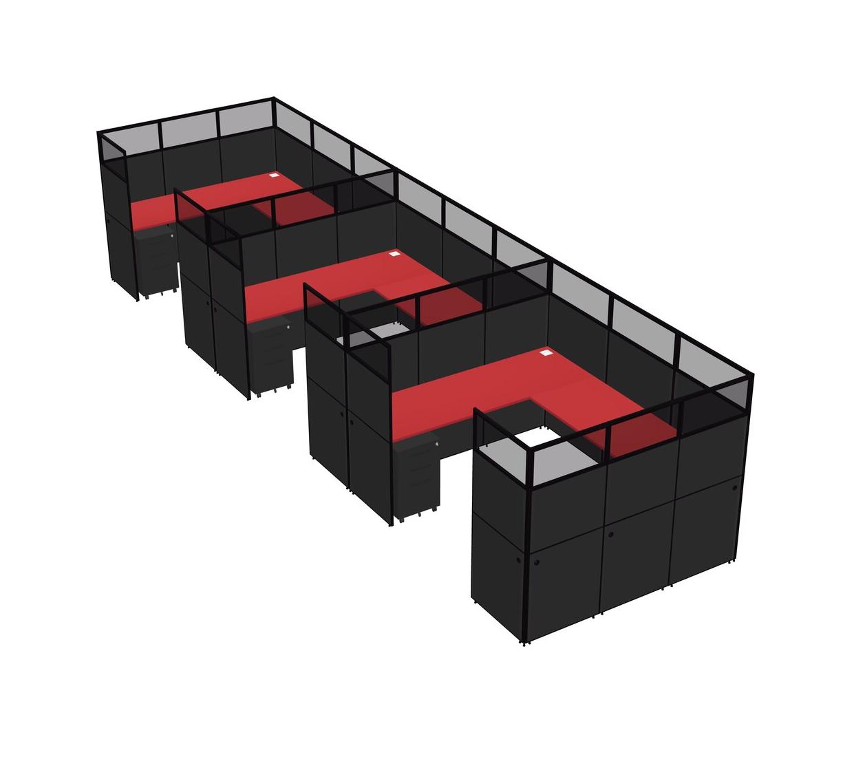 Système De Panneaux En U Prism Red Pour 3 Personnes + Tiroirs Mobiles En Métal Pour 3 Utilisateur(s)