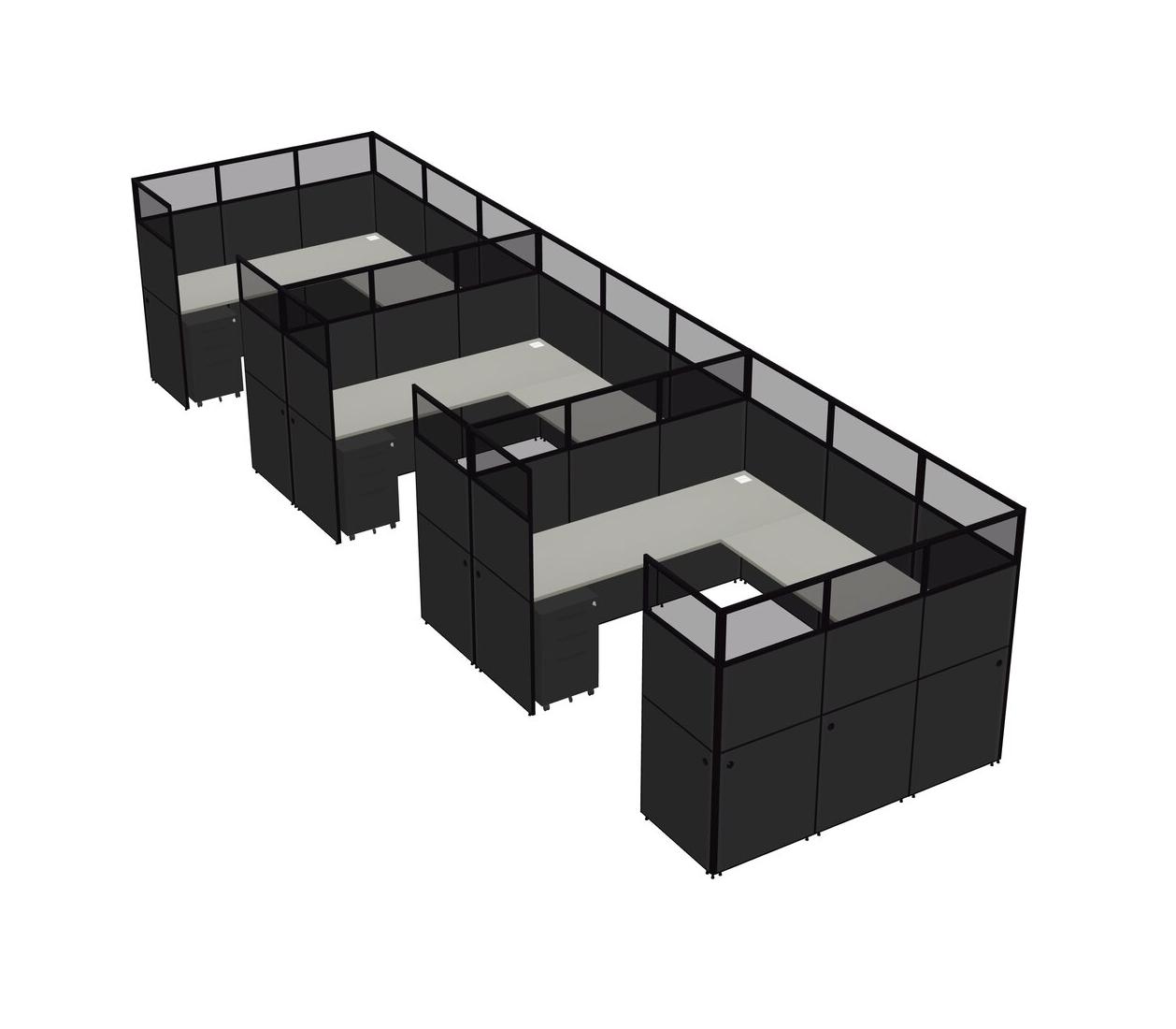 Système De Panneaux En U Grey Shadows Pour 3 Personnes + Tiroirs Mobiles En Métal Pour 3 Utilisateur(s)