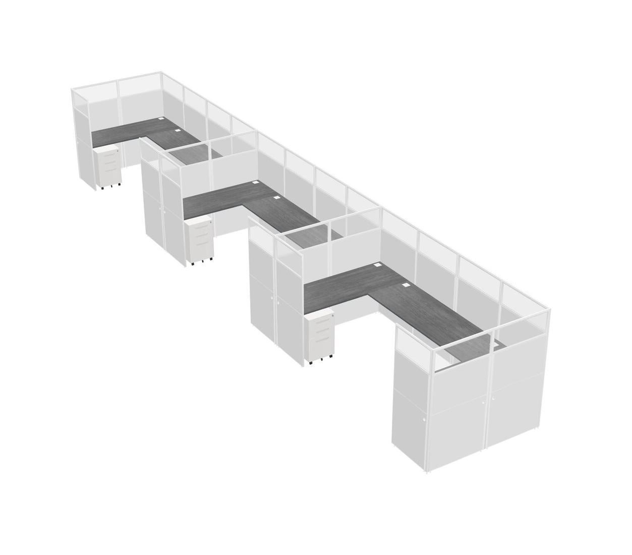 Système De Panneaux En U Gris Pour 3 Personnes + Tiroirs Mobiles En Métal Pour 3 Utilisateur(s)