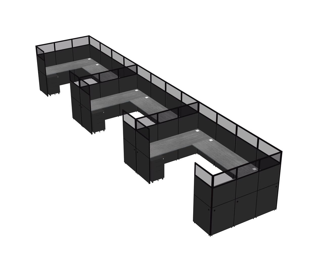 Système De Panneaux En U Gris Pour 3 Personnes + Tiroirs Mobiles En Métal Pour 3 Utilisateur(s)