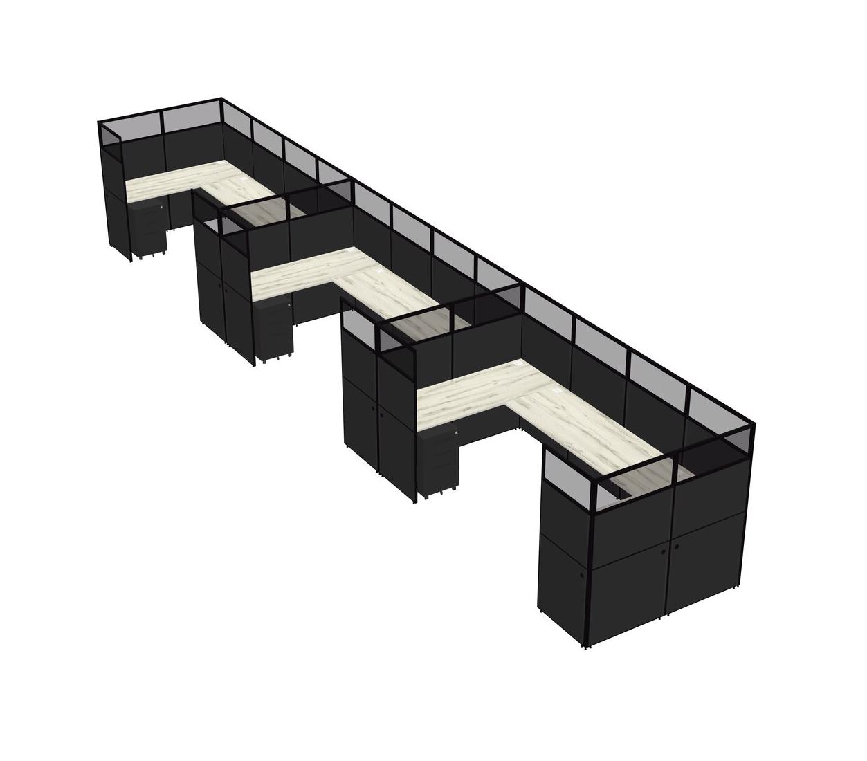 Système De Panneaux En U Heinne Holz Pour 3 Personnes + Tiroirs Mobiles En Métal Pour 3 Utilisateur(s)