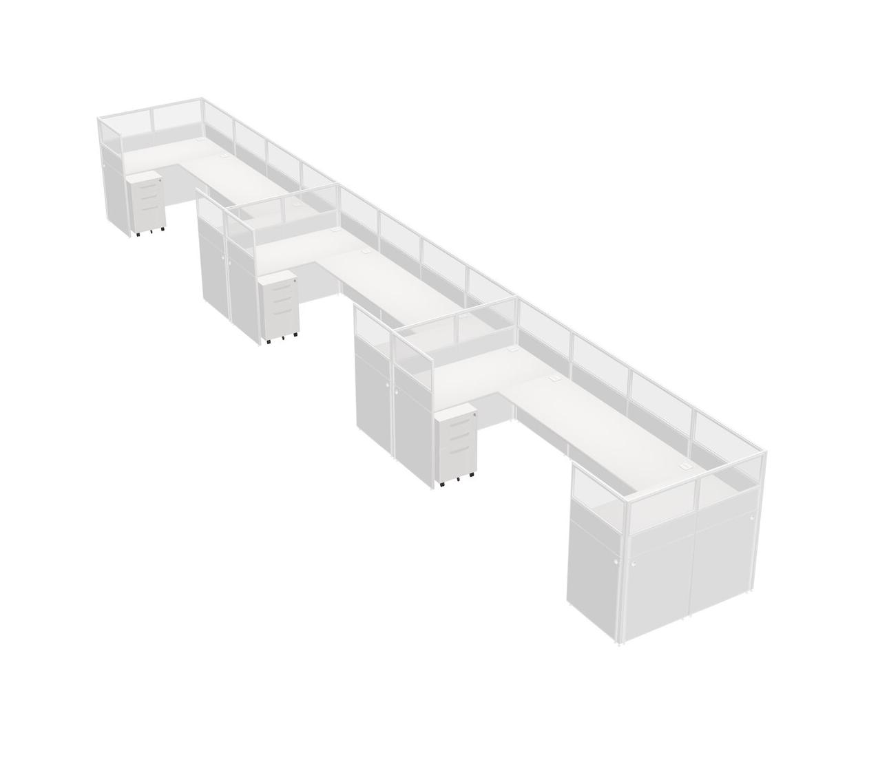 Système De Panneaux En U Blanc Pour 3 Personnes + Tiroirs Mobiles En Métal Pour 3 Utilisateur(s)