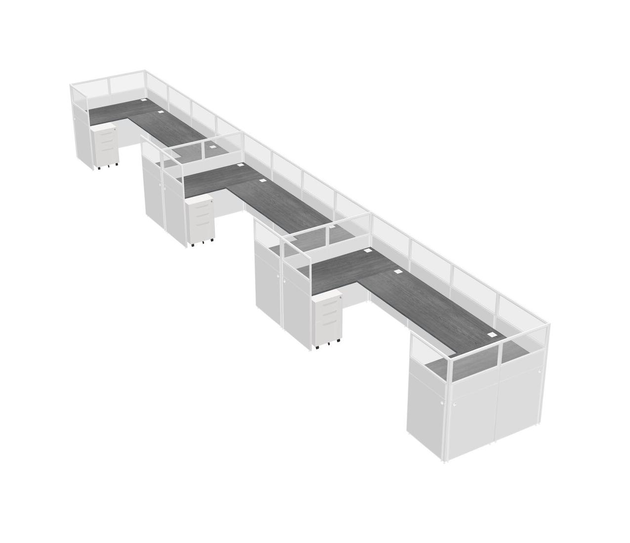 Système De Panneaux En U Gris Pour 3 Personnes + Tiroirs Mobiles En Métal Pour 3 Utilisateur(s)