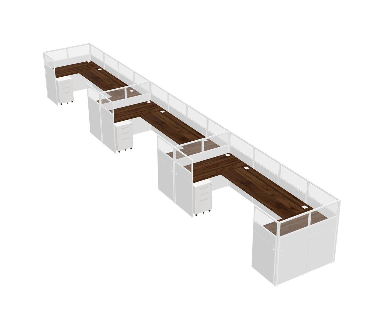 Système De Panneaux En U En Noyer Columbia Pour 3 Personnes + Tiroirs Mobiles En Métal Pour 3 Utilisateur(s)