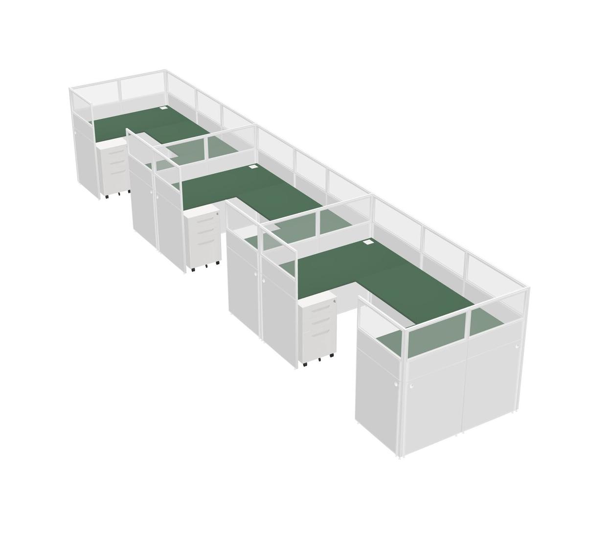 Système De Panneaux En U Vert Pour 3 Personnes + Tiroirs Mobiles En Métal Pour 3 Utilisateur(s)