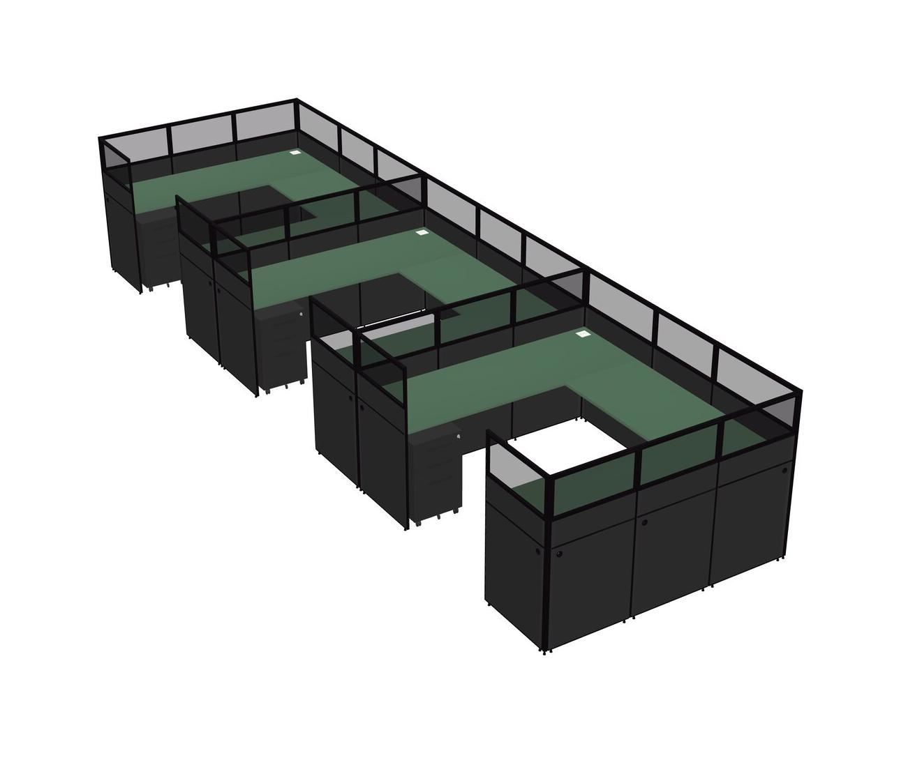 Système De Panneaux En U Vert Pour 3 Personnes + Tiroirs Mobiles En Métal Pour 3 Utilisateur(s)