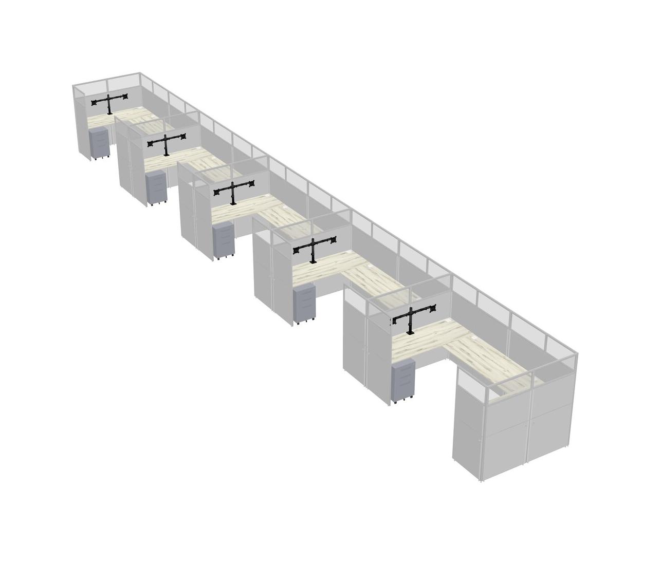 Système De Panneaux En U Heinne Holz Pour 5 Personnes + Bras D'écran (bras Doubles) + Tiroirs Mobiles En Métal Pour 5 Utilisateur(s)