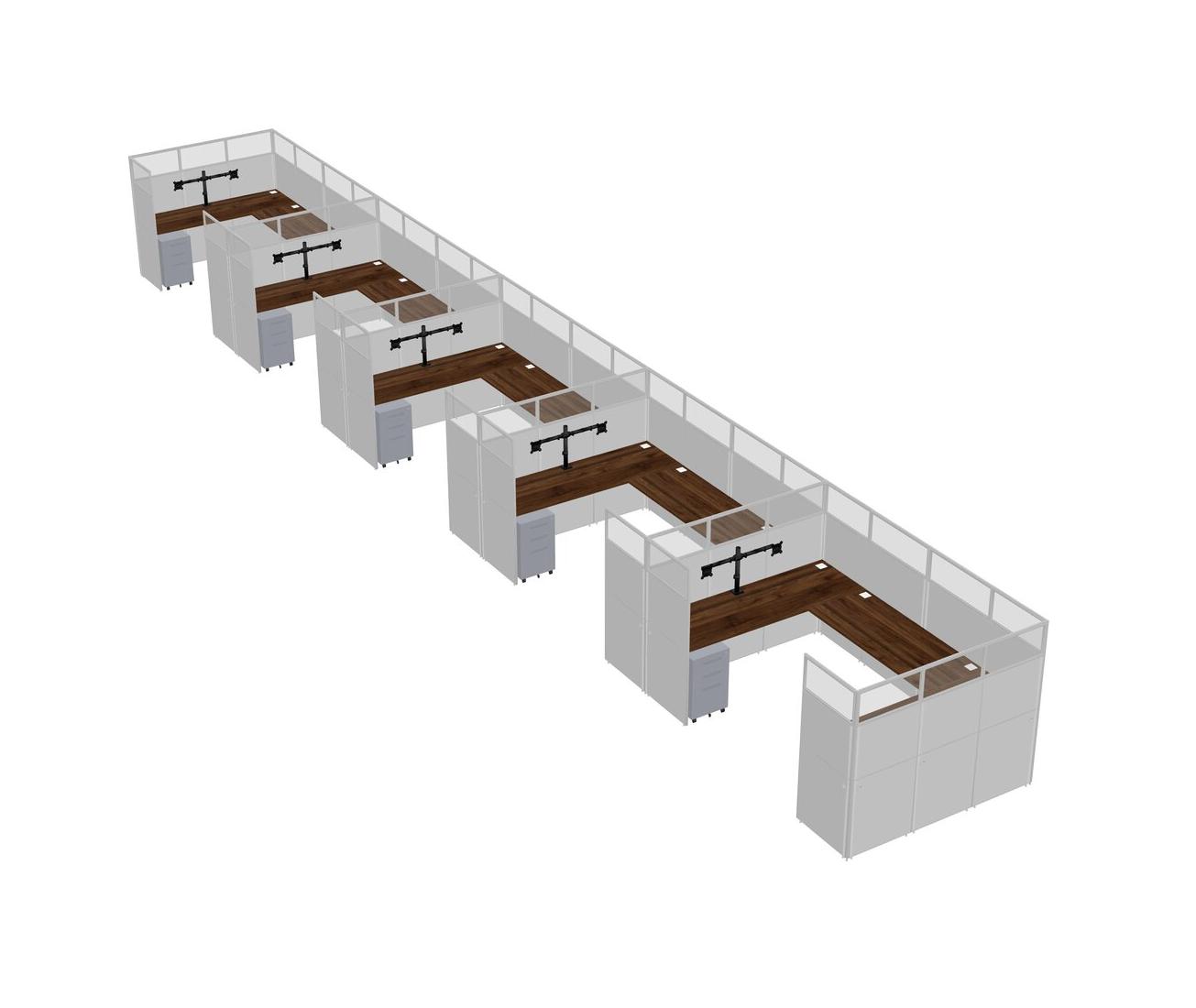 Système De Panneaux En U En Noyer Columbia Pour 5 Personnes + Bras D'écran (bras Doubles) + Tiroirs Mobiles En Métal Pour 5 Utilisateur(s)