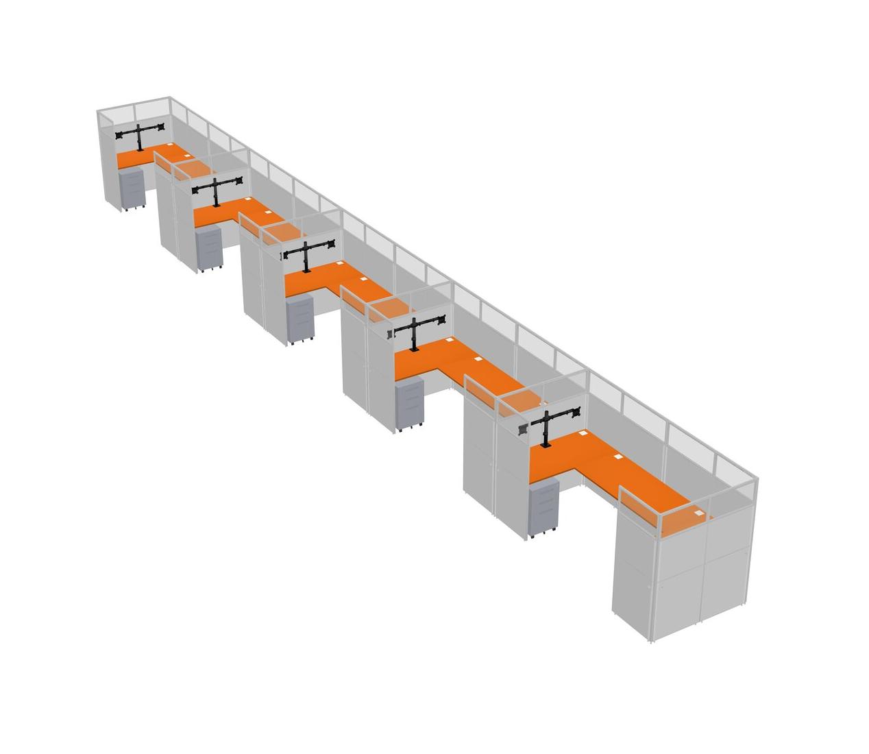 Système De Panneaux En U Orange Pour 5 Personnes + Bras De Moniteur (bras Doubles) + Tiroirs Mobiles En Métal Pour 5 Utilisateur(s)
