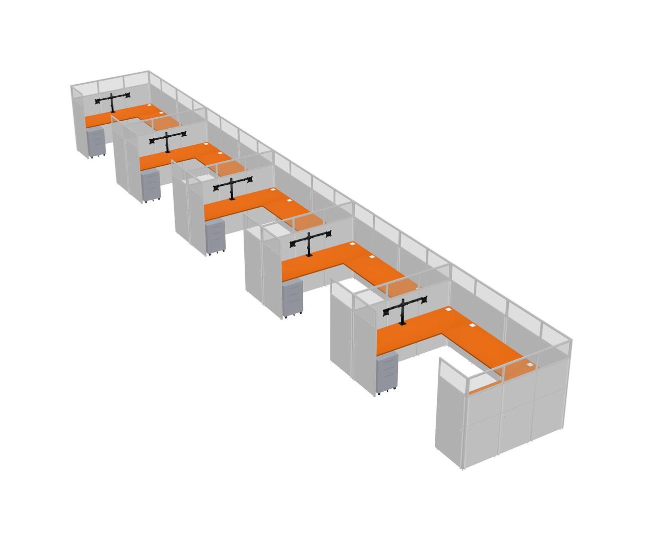 Système De Panneaux En U Orange Pour 5 Personnes + Bras De Moniteur (bras Doubles) + Tiroirs Mobiles En Métal Pour 5 Utilisateur(s)