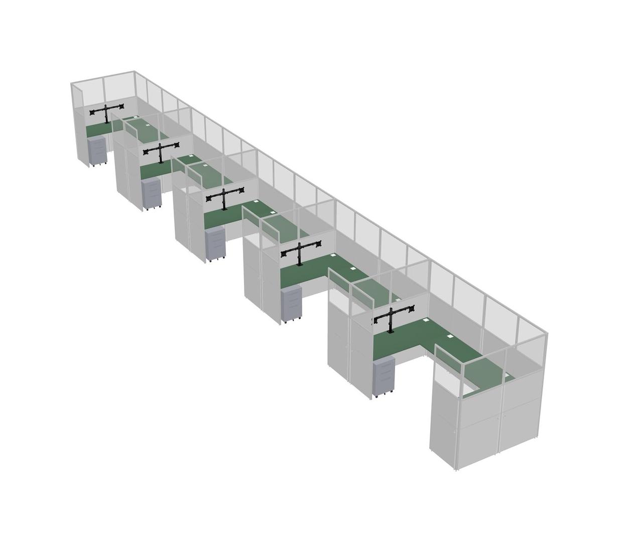 Système De Panneaux En U Vert Pour 5 Personnes + Bras De Moniteur (bras Doubles) + Tiroirs Mobiles En Métal Pour 5 Utilisateur(s)