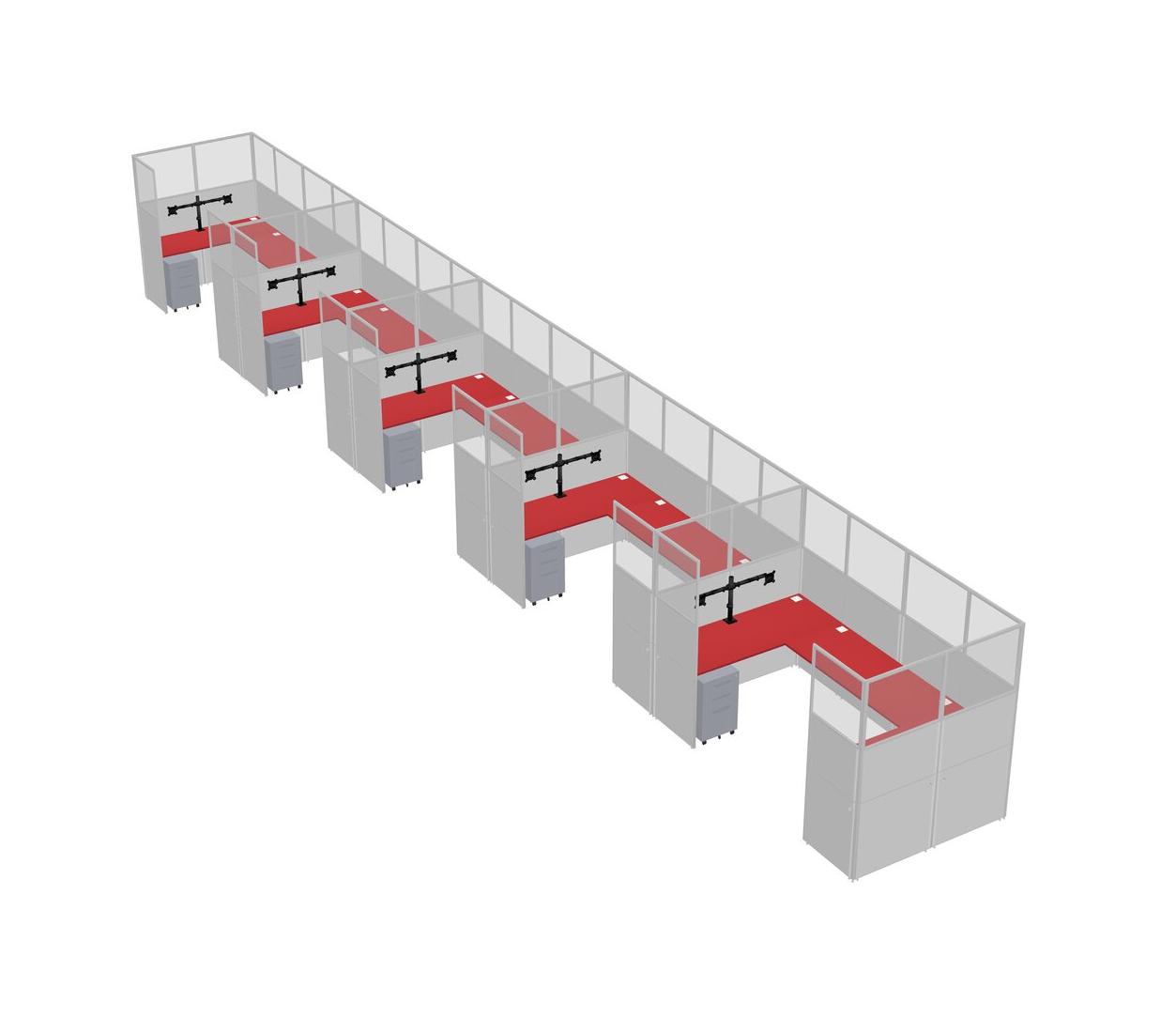 Système De Panneaux En U Prism Red Pour 5 Personnes + Bras D'écran (bras Doubles) + Tiroirs Mobiles En Métal Pour 5 Utilisateur(s)