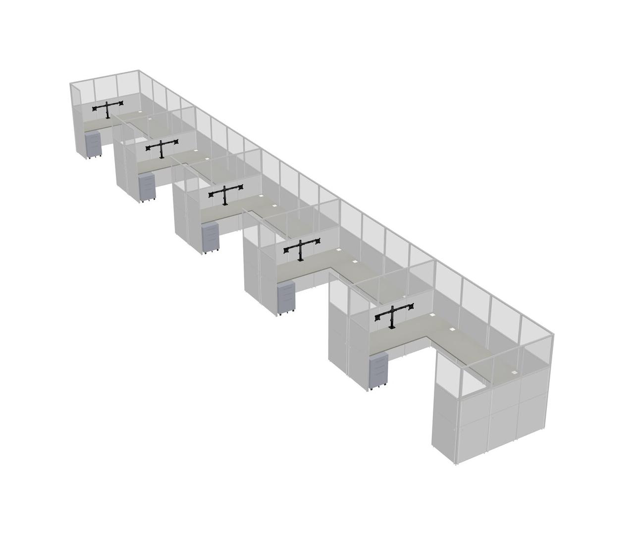 Système De Panneaux En U Grey Shadows Pour 5 Personnes + Bras D'écran (bras Doubles) + Tiroirs Mobiles En Métal Pour 5 Utilisateur(s)