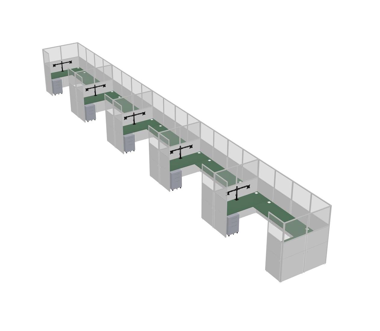 Système De Panneaux En U Vert Pour 5 Personnes + Bras De Moniteur (bras Doubles) + Tiroirs Mobiles En Métal Pour 5 Utilisateur(s)
