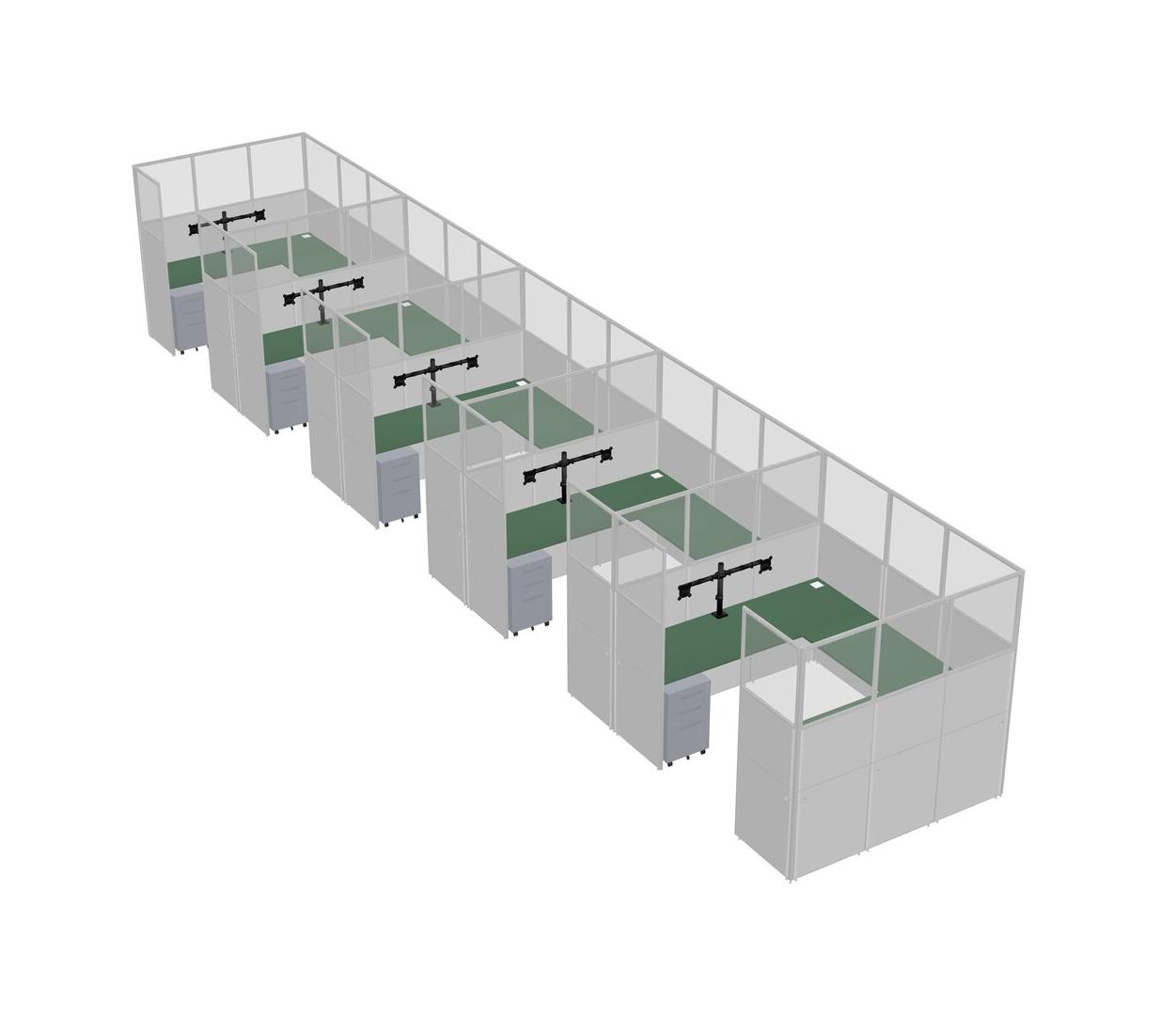 Système De Panneaux En U Vert Pour 5 Personnes + Bras De Moniteur (bras Doubles) + Tiroirs Mobiles En Métal Pour 5 Utilisateur(s)