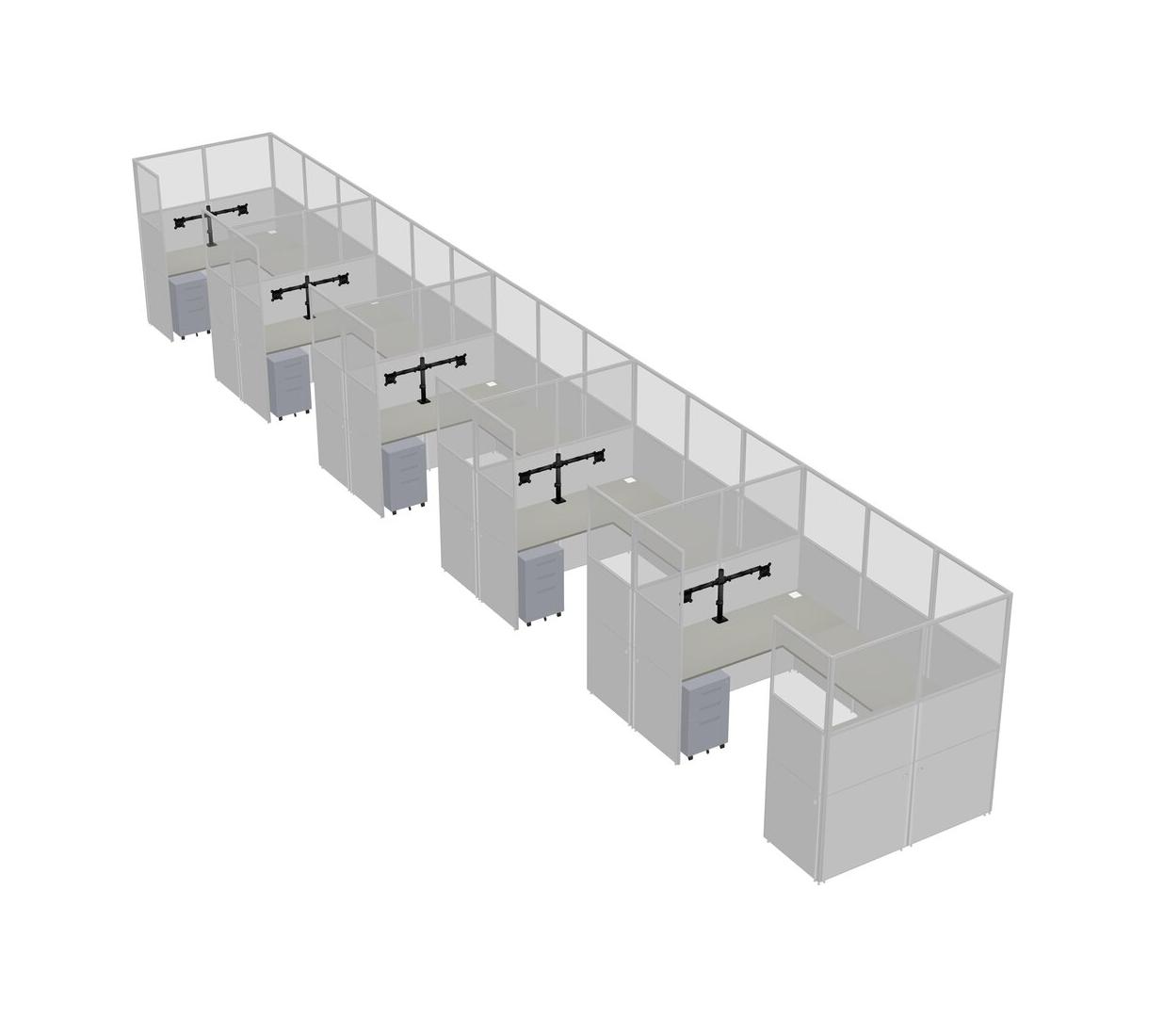 Système De Panneaux En U Grey Shadows Pour 5 Personnes + Bras D'écran (bras Doubles) + Tiroirs Mobiles En Métal Pour 5 Utilisateur(s)