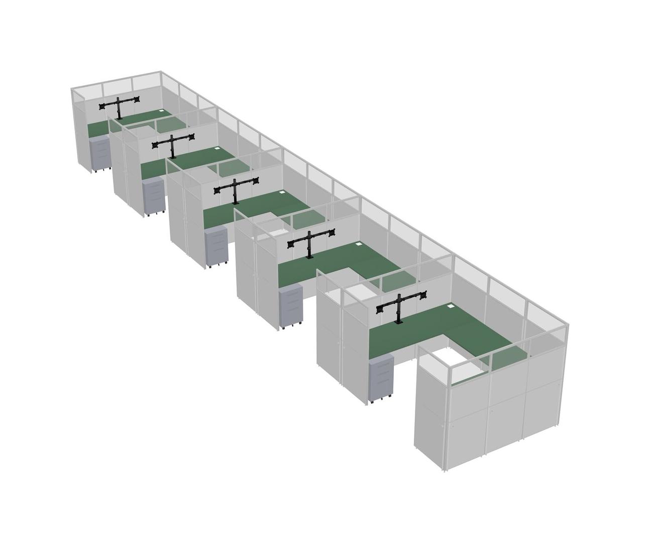 Système De Panneaux En U Vert Pour 5 Personnes + Bras De Moniteur (bras Doubles) + Tiroirs Mobiles En Métal Pour 5 Utilisateur(s)