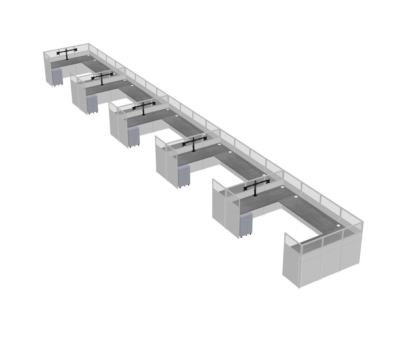 Système De Panneaux En U Gris Pour 5 Personnes + Bras D'écran (bras Doubles) + Tiroirs Mobiles En Métal Pour 5 Utilisateur(s)