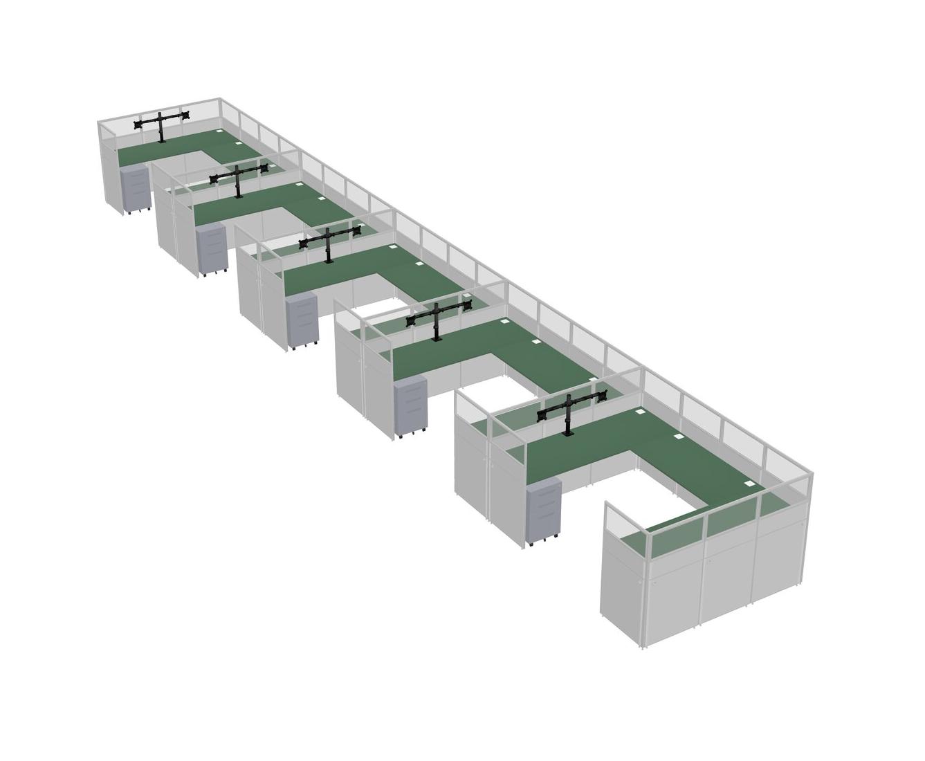 Système De Panneaux En U Vert Pour 5 Personnes + Bras De Moniteur (bras Doubles) + Tiroirs Mobiles En Métal Pour 5 Utilisateur(s)