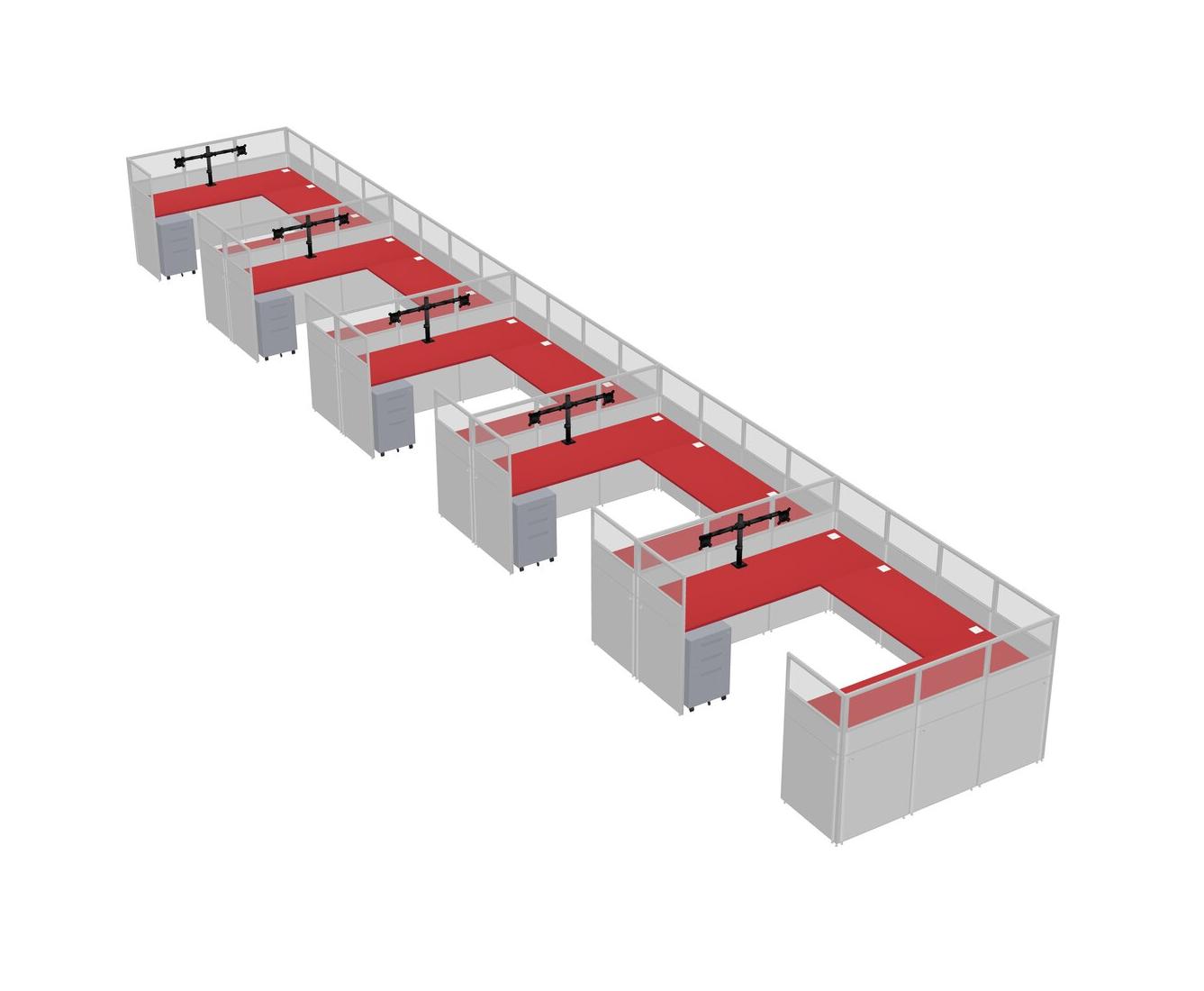 Système De Panneaux En U Prism Red Pour 5 Personnes + Bras D'écran (bras Doubles) + Tiroirs Mobiles En Métal Pour 5 Utilisateur(s)