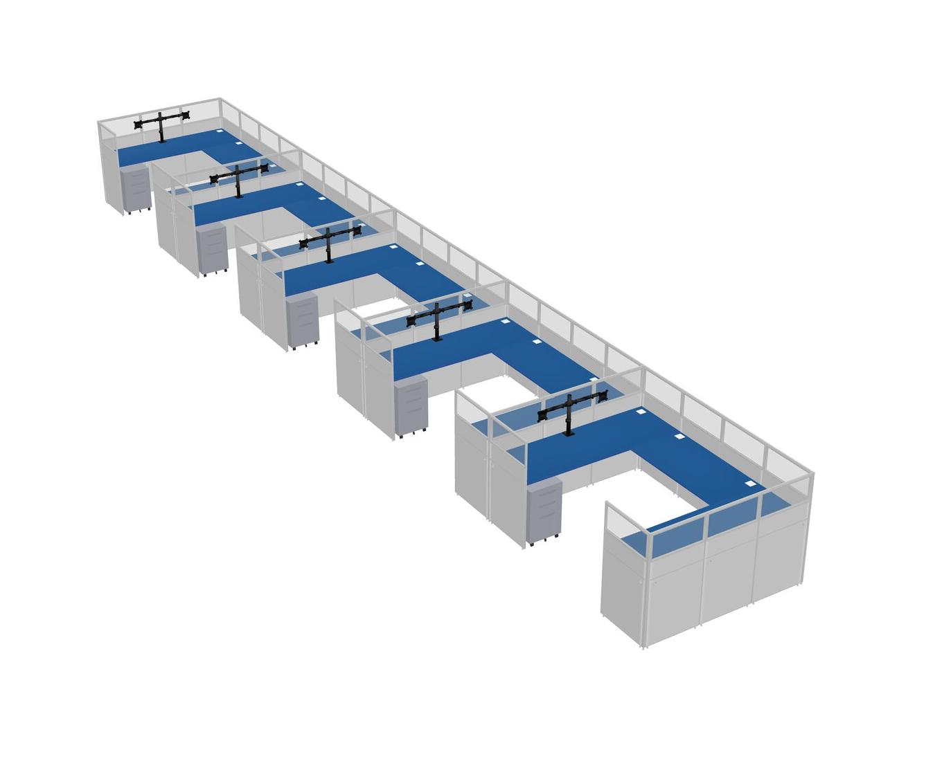 Système De Panneaux En U Prism Blue Pour 5 Personnes + Bras D'écran (bras Doubles) + Tiroirs Mobiles En Métal Pour 5 Utilisateur(s)