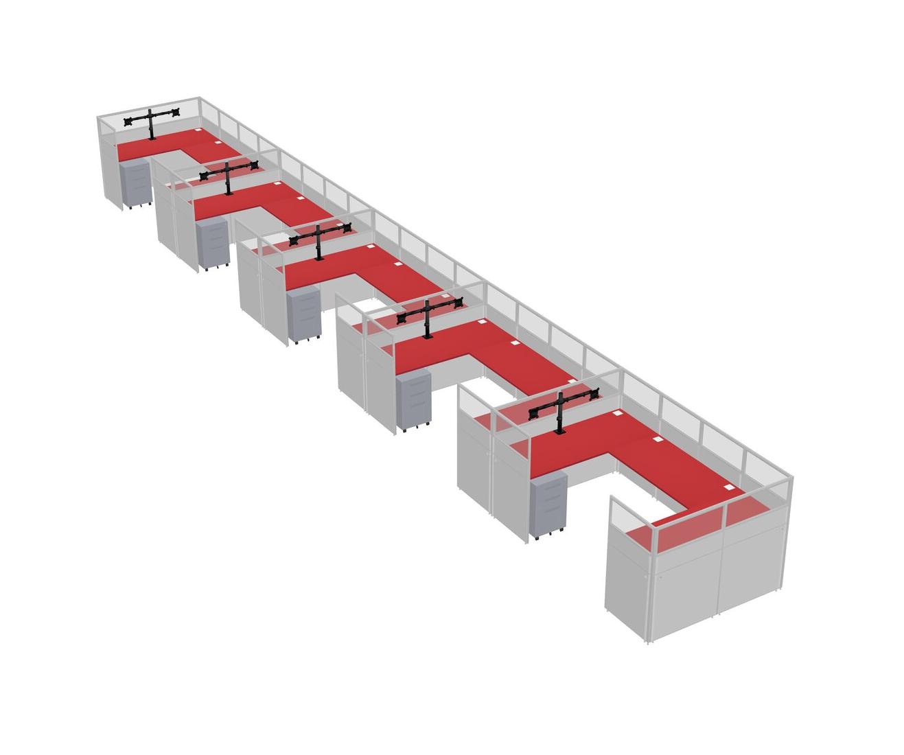 Système De Panneaux En U Prism Red Pour 5 Personnes + Bras D'écran (bras Doubles) + Tiroirs Mobiles En Métal Pour 5 Utilisateur(s)