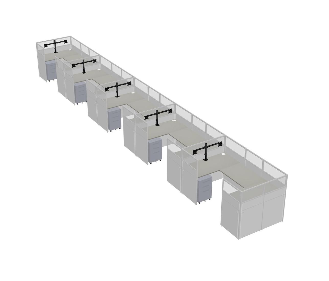 Système De Panneaux En U Grey Shadows Pour 5 Personnes + Bras D'écran (bras Doubles) + Tiroirs Mobiles En Métal Pour 5 Utilisateur(s)