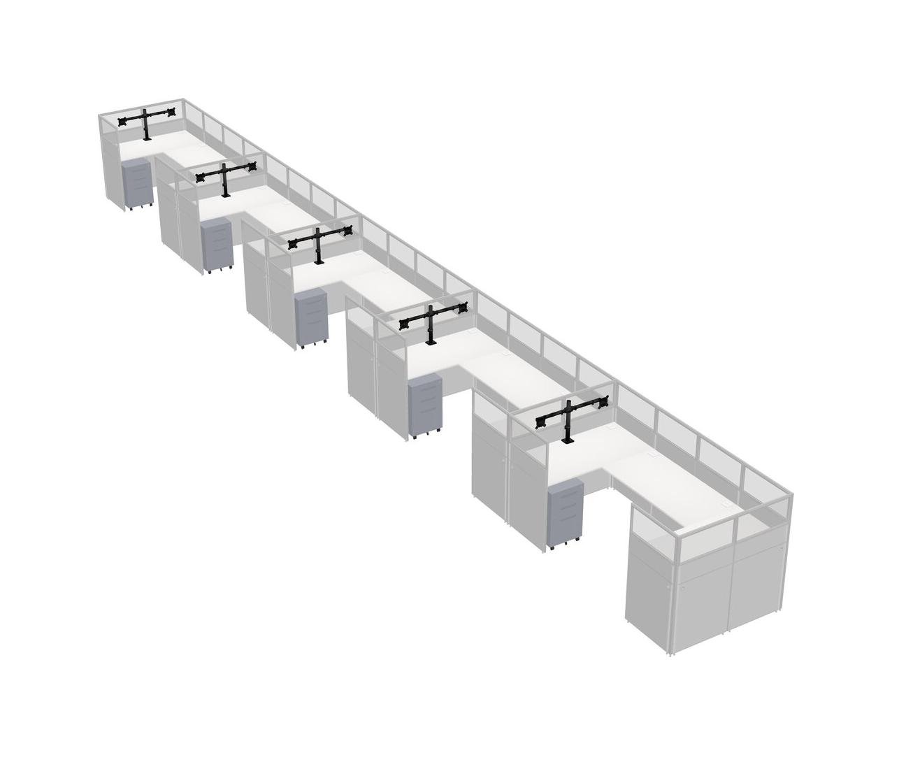 Système De Panneaux Blancs En U Pour 5 Personnes + Bras D'écran (bras Doubles) + Tiroirs Mobiles En Métal Pour 5 Utilisateur(s)