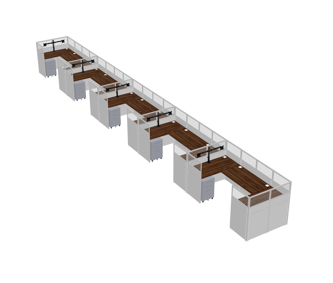 Système De Panneaux En U En Noyer Columbia Pour 5 Personnes + Bras D'écran (bras Doubles) + Tiroirs Mobiles En Métal Pour 5 Utilisateur(s)