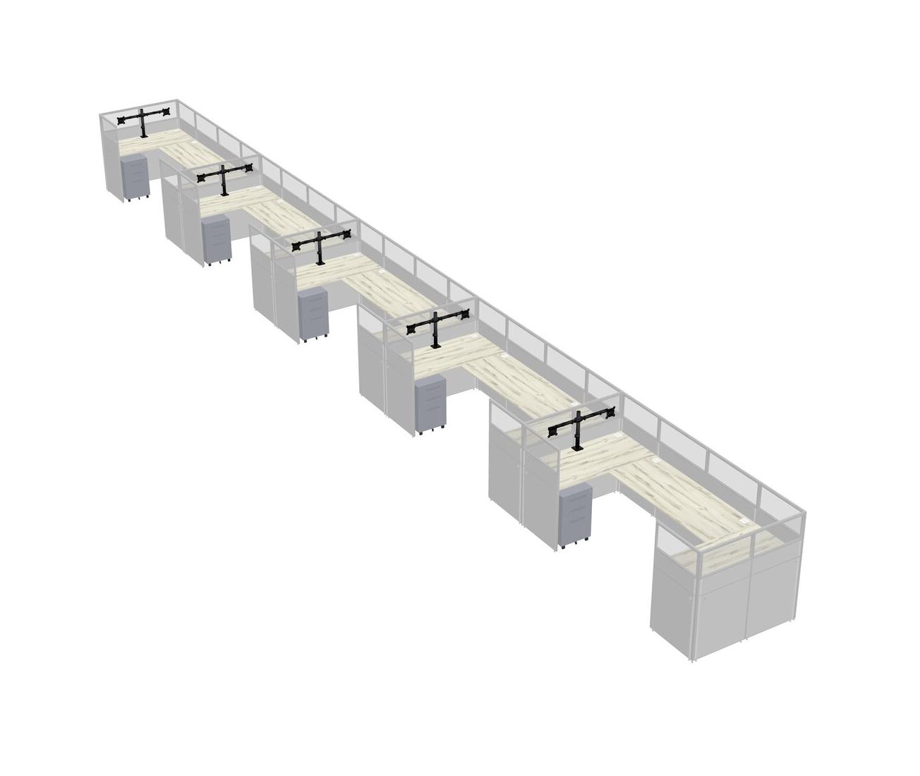 Système De Panneaux En U Heinne Holz Pour 5 Personnes + Bras D'écran (bras Doubles) + Tiroirs Mobiles En Métal Pour 5 Utilisateur(s)