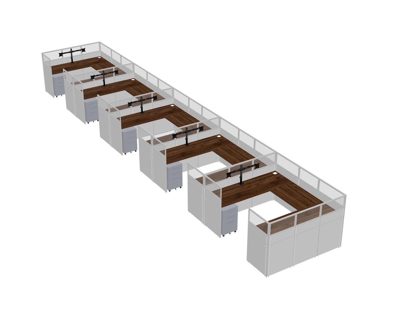 Système De Panneaux En U En Noyer Columbia Pour 5 Personnes + Bras D'écran (bras Doubles) + Tiroirs Mobiles En Métal Pour 5 Utilisateur(s)