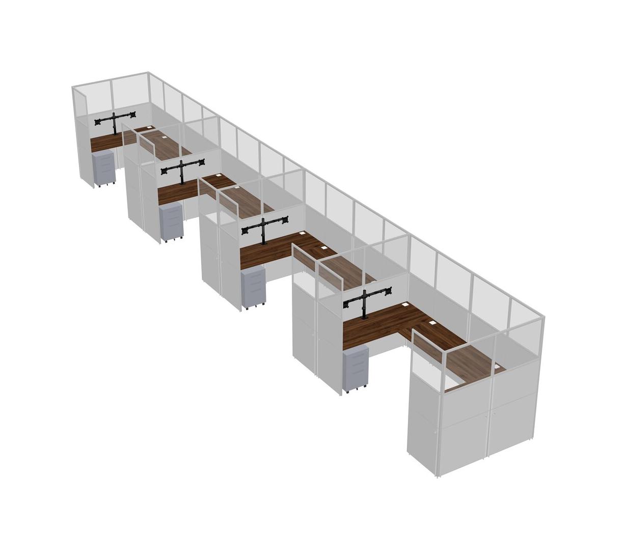 Système De Panneaux En U En Noyer Columbia Pour 4 Personnes + Bras D'écran (bras Doubles) + Tiroirs Mobiles En Métal Pour 4 Utilisateur(s)