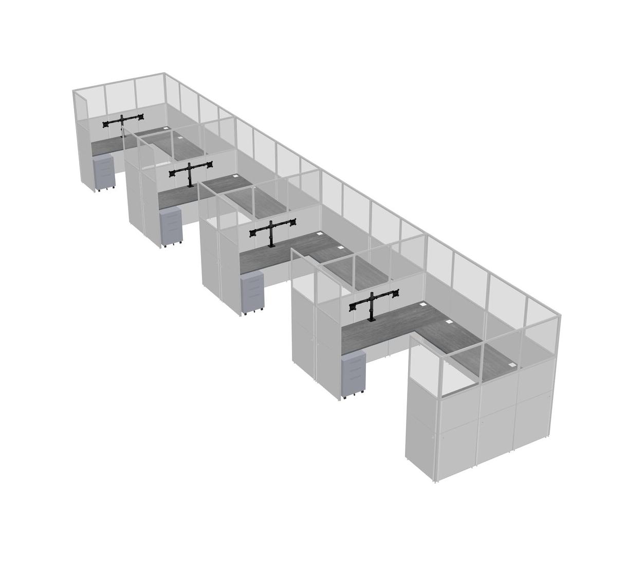 Système De Panneaux En U Gris Pour 4 Personnes + Bras D'écran (bras Doubles) + Tiroirs Mobiles En Métal Pour 4 Utilisateur(s)