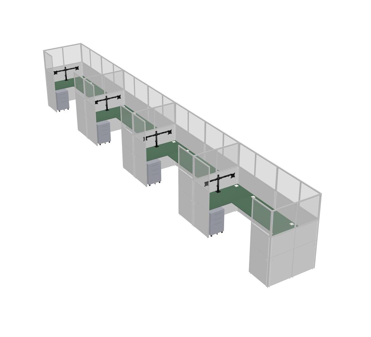 Système De Panneaux En U Vert Pour 4 Personnes + Bras De Moniteur (bras Doubles) + Tiroirs Mobiles En Métal Pour 4 Utilisateur(s)