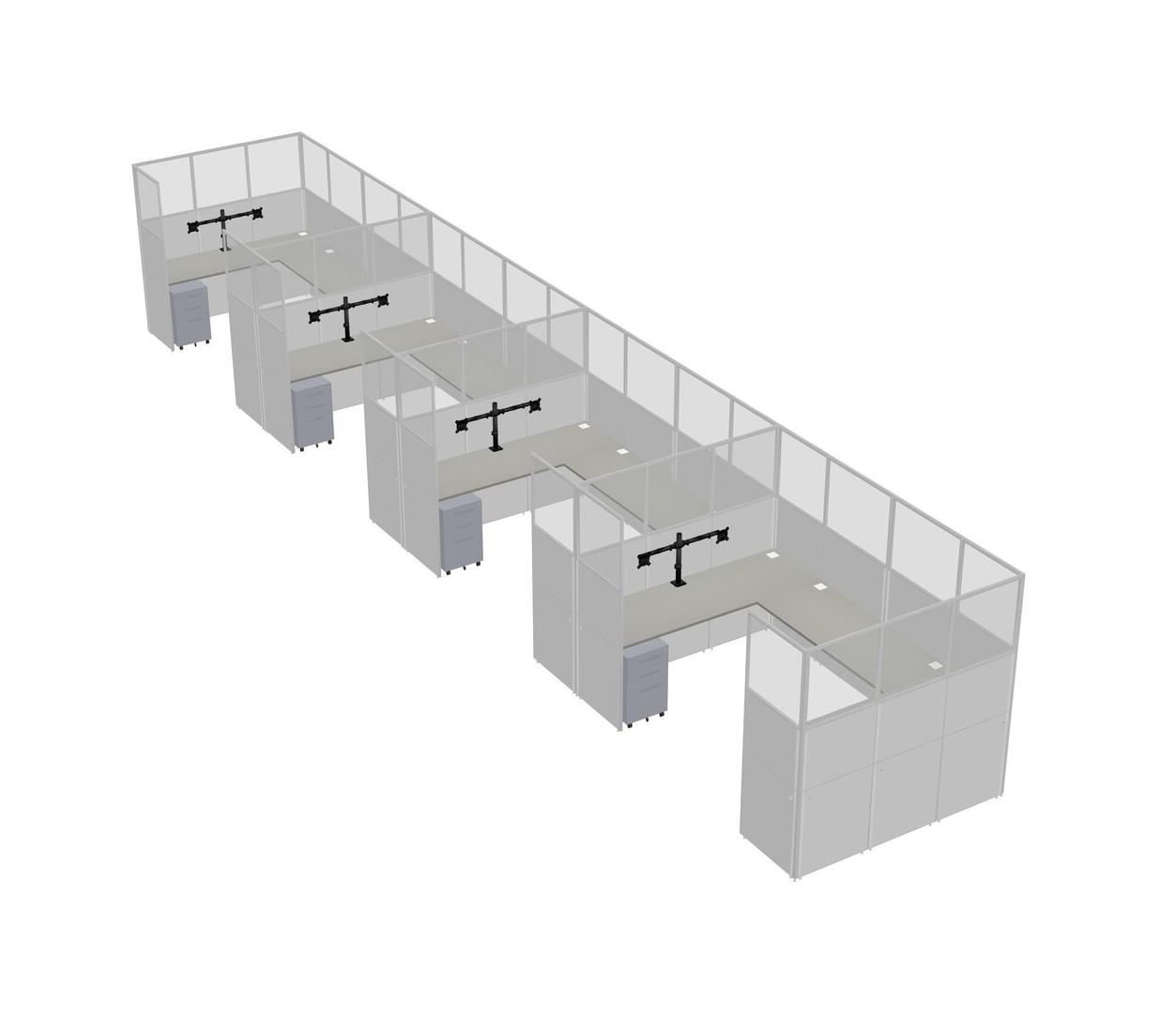 Système De Panneaux En U Grey Shadows Pour 4 Personnes + Bras D'écran (bras Doubles) + Tiroirs Mobiles En Métal Pour 4 Utilisateur(s)