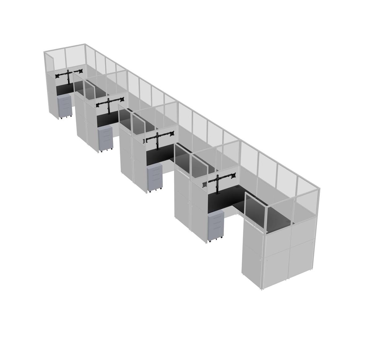 Système De Panneaux En U Noir Pour 4 Personnes + Bras D'écran (bras Doubles) + Tiroirs Mobiles En Métal Pour 4 Utilisateur(s)