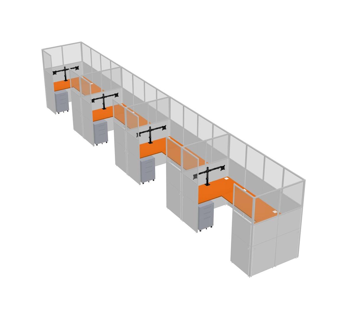 Système De Panneaux En U Orange Pour 4 Personnes + Bras De Moniteur (bras Doubles) + Tiroirs Mobiles En Métal Pour 4 Utilisateur(s)