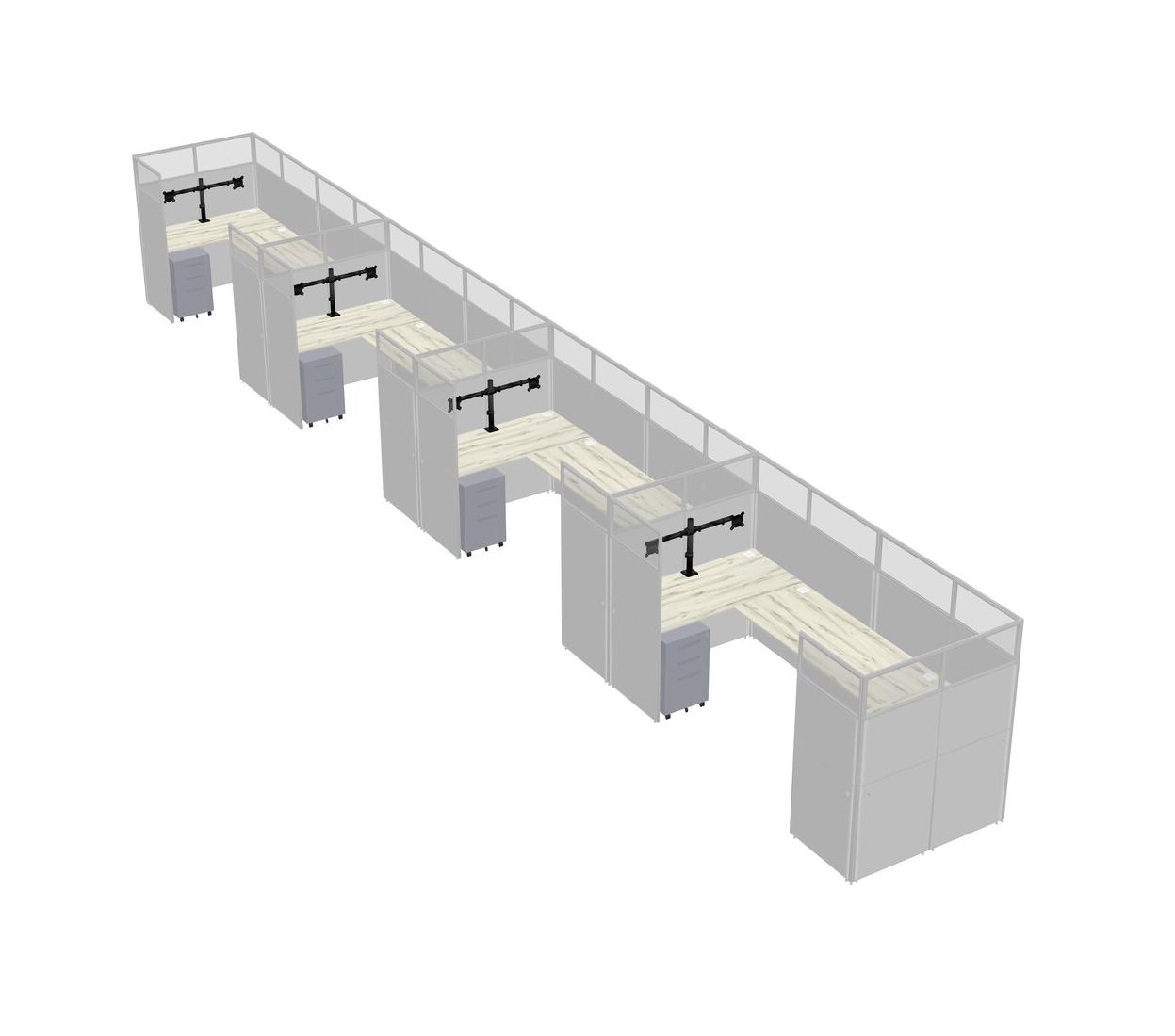 Système De Panneaux En U Heinne Holz Pour 4 Personnes + Bras D'écran (bras Doubles) + Tiroirs Mobiles En Métal Pour 4 Utilisateur(s)