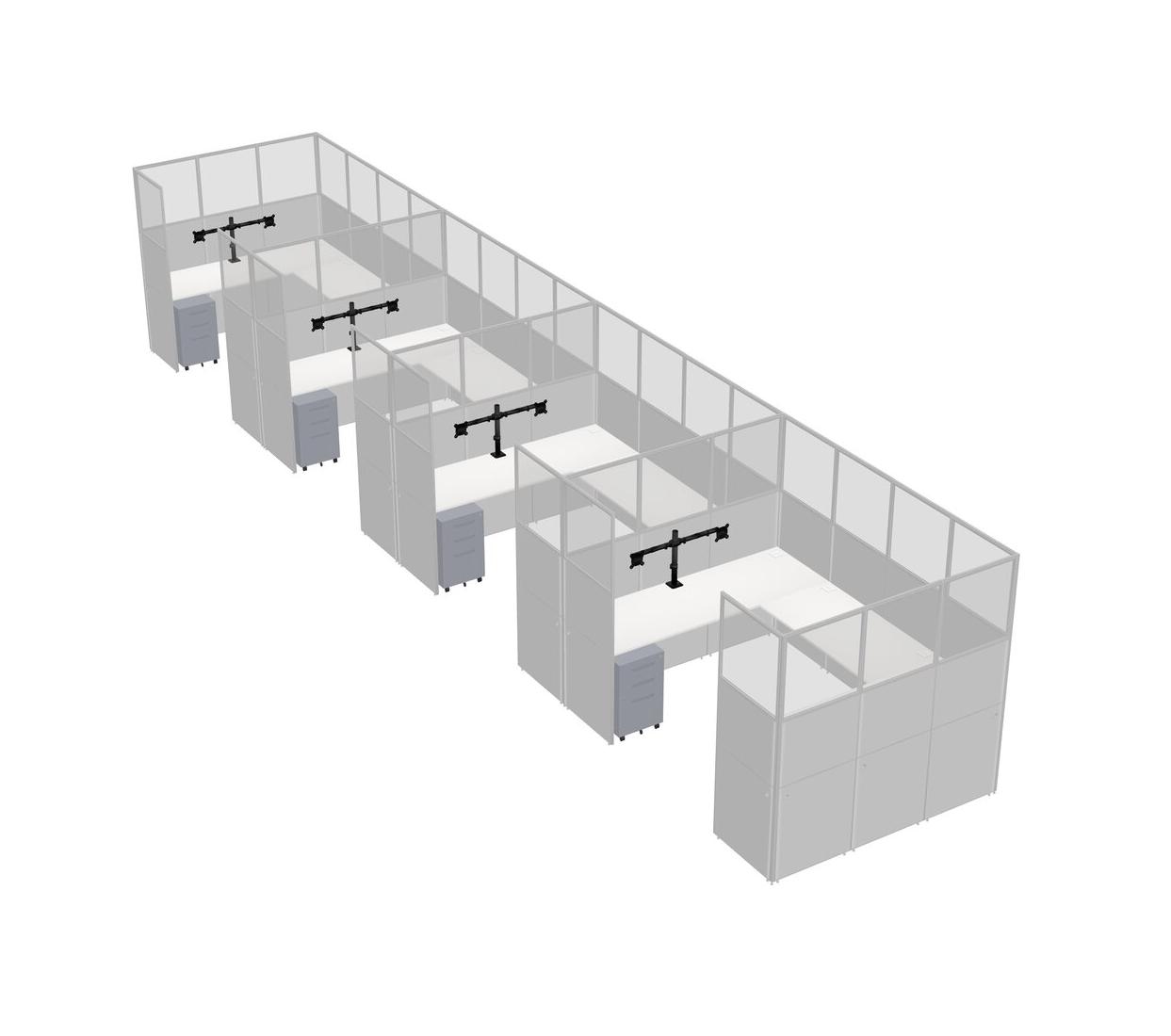 Système De Panneaux Blancs En U Pour 4 Personnes + Bras D'écran (bras Doubles) + Tiroirs Mobiles En Métal Pour 4 Utilisateur(s)