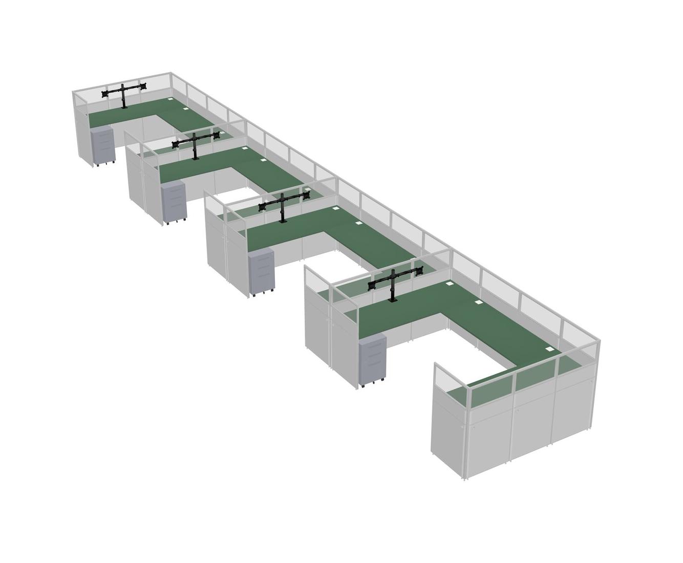 Système De Panneaux En U Vert Pour 4 Personnes + Bras De Moniteur (bras Doubles) + Tiroirs Mobiles En Métal Pour 4 Utilisateur(s)