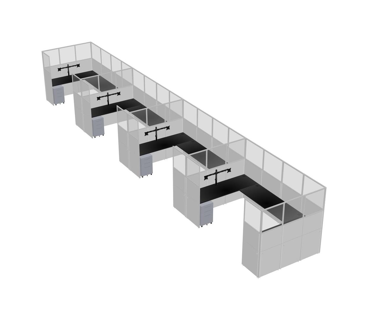 Système De Panneaux En U Noir Pour 4 Personnes + Bras D'écran (bras Doubles) + Tiroirs Mobiles En Métal Pour 4 Utilisateur(s)