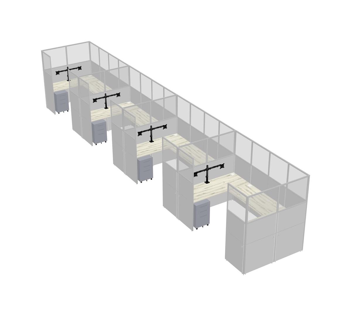 Système De Panneaux En U Heinne Holz Pour 4 Personnes + Bras D'écran (bras Doubles) + Tiroirs Mobiles En Métal Pour 4 Utilisateur(s)